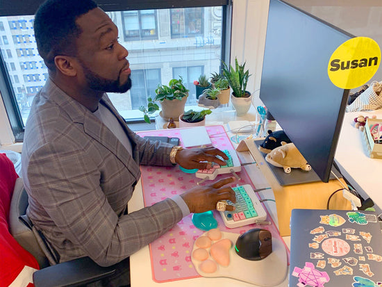 ❥ 50 Cent VERIFIED @ OUR DESK ft. Magic Girl + matching Pink Deskmat