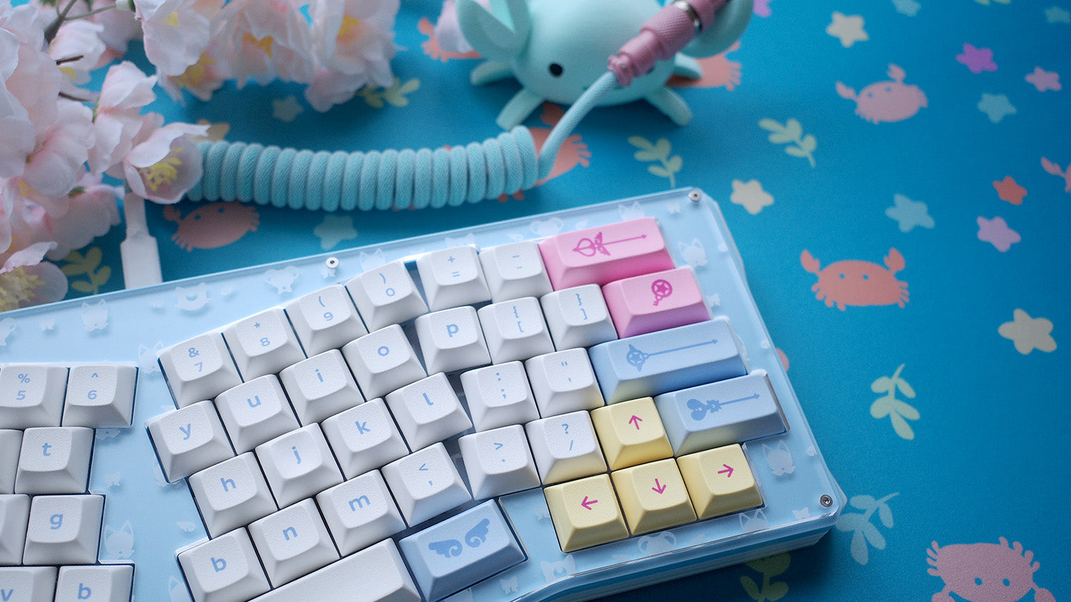 This collaboration with Switch Couture features the Allaro, a new Alice layout with Hotswap PCB and Arrow Cluster Keys! Comes in 3 colorways matching Magic Girl, Dark, and Millennium.