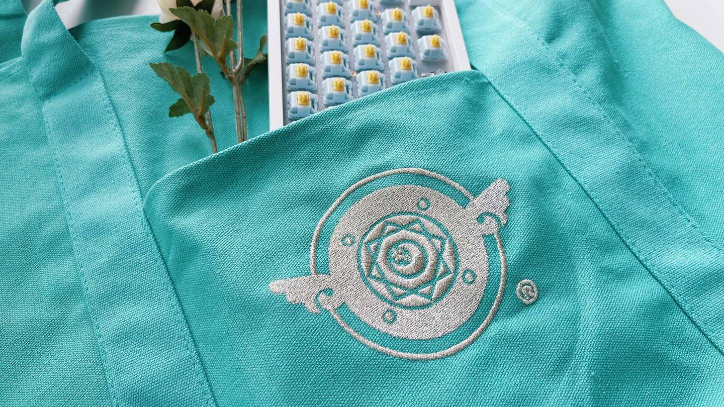 Totes! A mint bag your meet-up looks. Featuring the Mintlodica Emblem in Metallic Silver thread, these bags comfortably fit large keyboards and deskmats. It has an outside pocket, inside pocket, and clasp for your keys (the other kind of keys). Embroidered in Los Angeles on 100% Cotton Canvas.