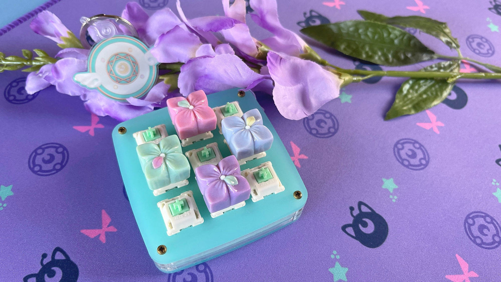 Set of 4 Magic Girl Floral Artisan Keycaps on 65% keyboard macro column.